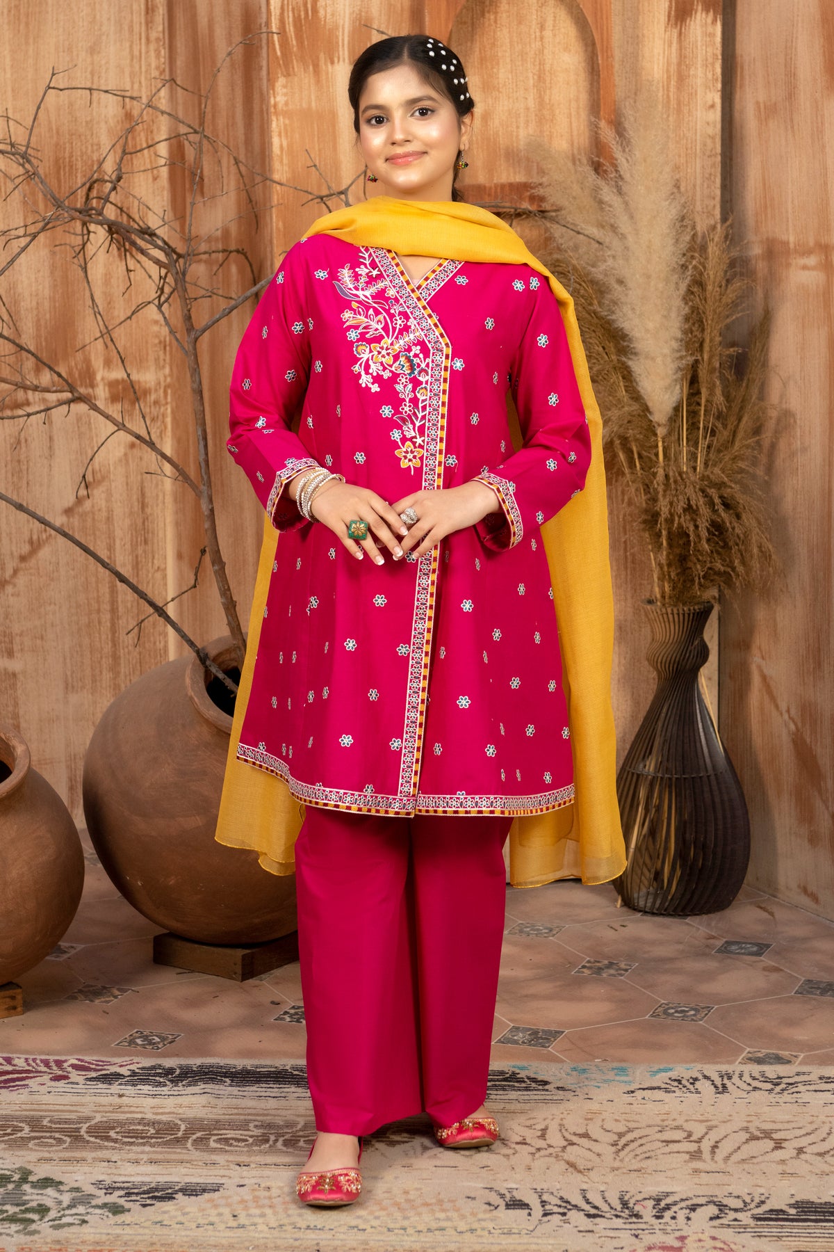 NOTE: From 9 to 12 has a short dupatta. From 13 to 18 size has a full dupatta of 2.5 y